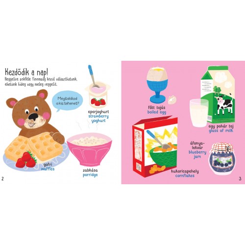 Minden kisgyerek szereti felfedezni környezetét. Ebben a könyvben a kedves és részletgazdag rajzok segítségével új és csodálatos szavakkal ismerkedhetnek meg magyarul és angolul egyaránt.